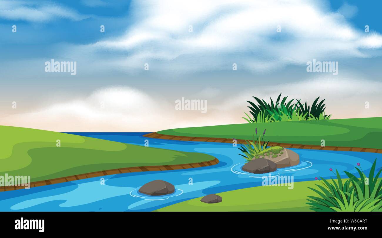 Lake Landscape Vector Illustration With Some Trees Meadow And