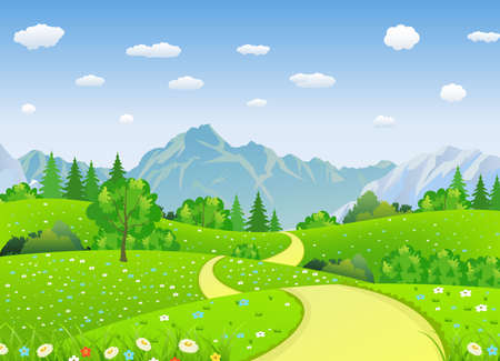 Summer Landscape Meadows Mountains Forest Nature Stock Vector
