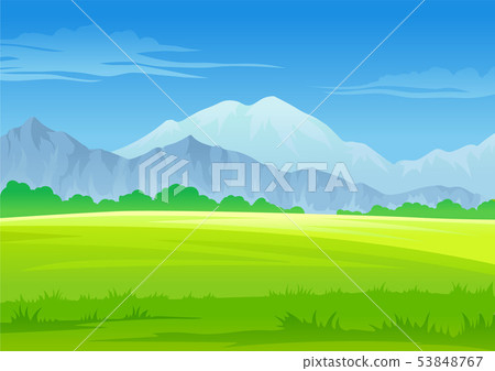 Green Meadow And Gray Mountains Vector Stock Illustration