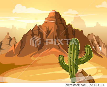 Desert Hills Cactus Near Big Mountain Vector Stock