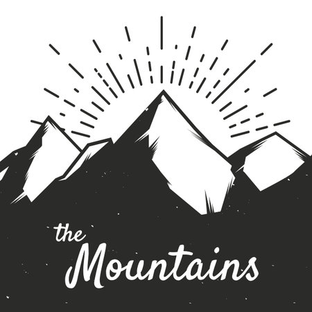 Vector Mountain Landscape With Grunge Texture And Light Rays On A