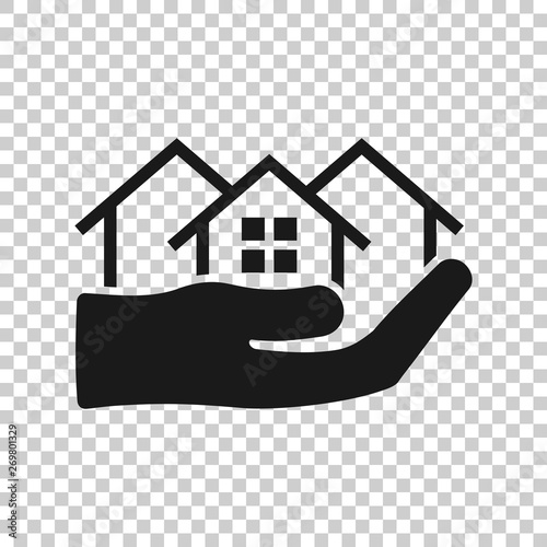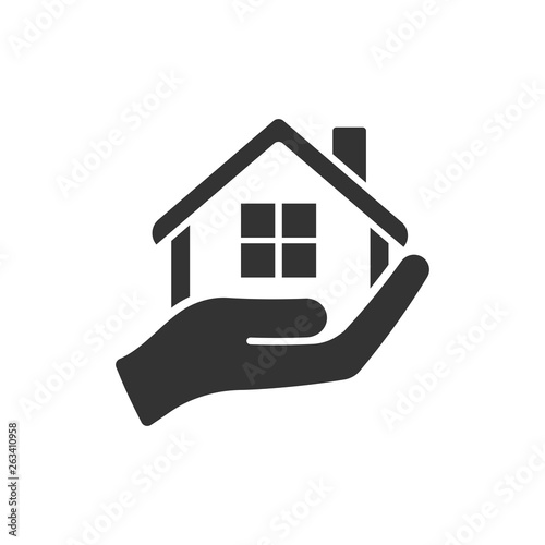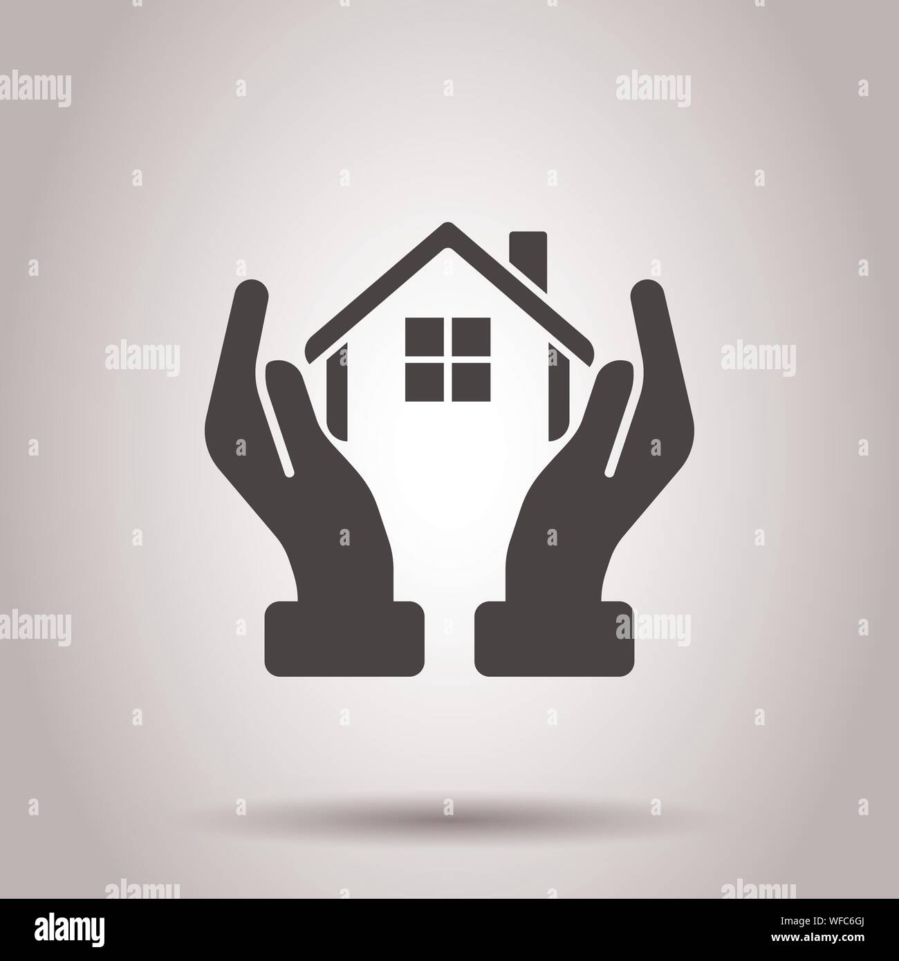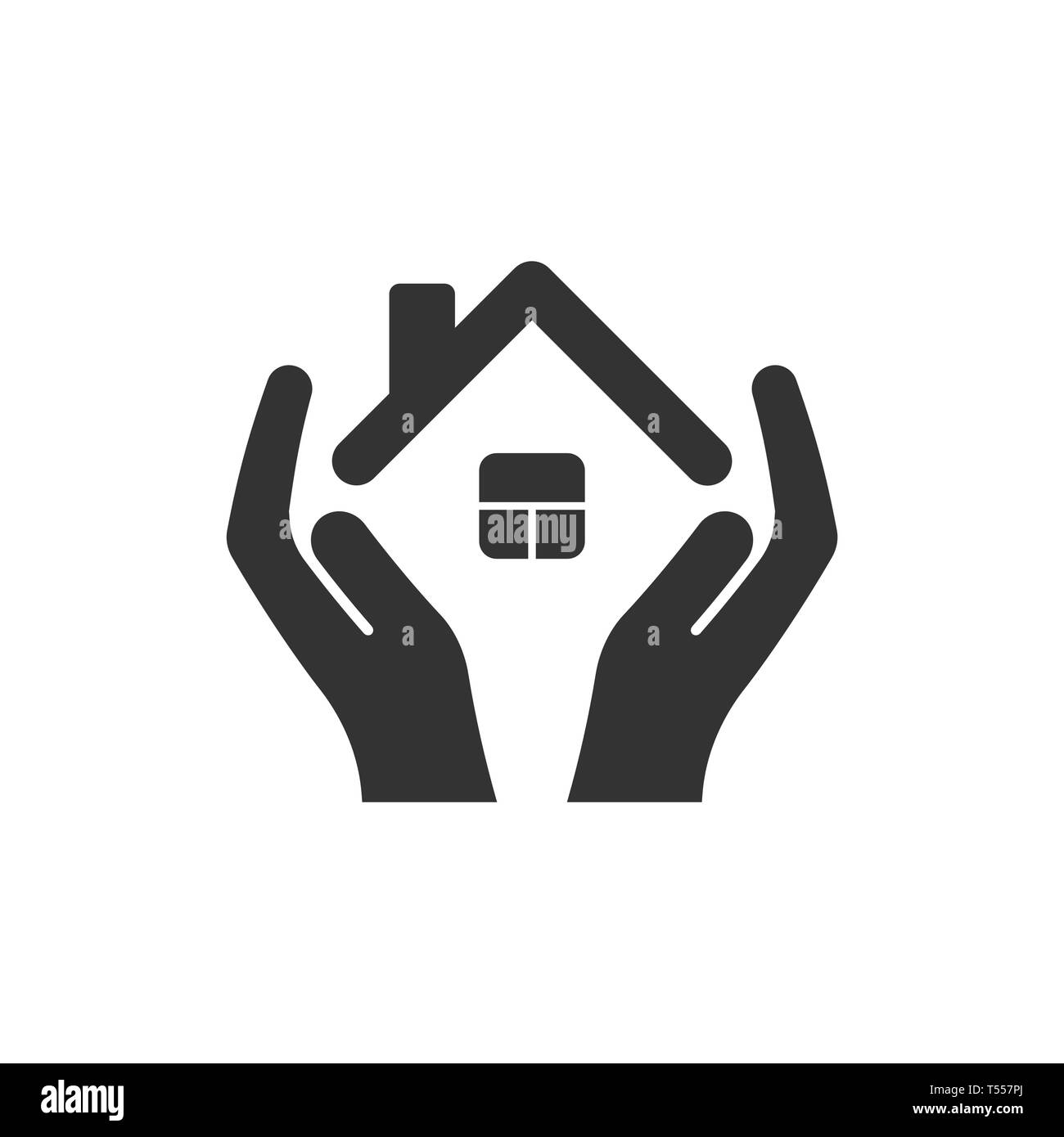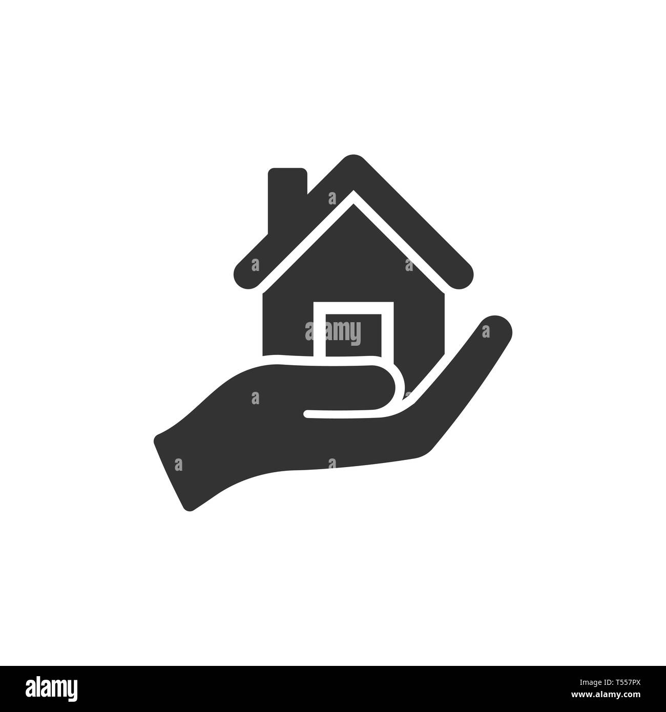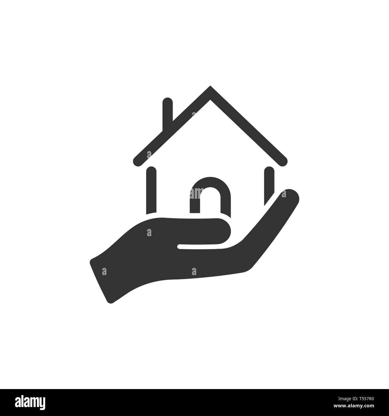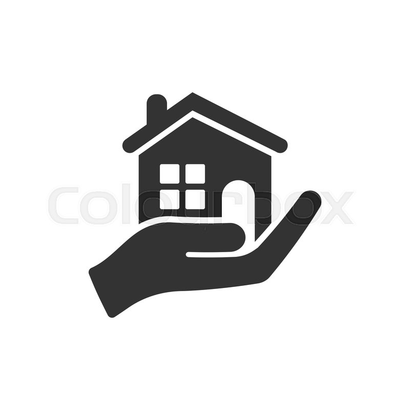 Home Care Icon In Flat Style Hand Hold House Vector Illustration