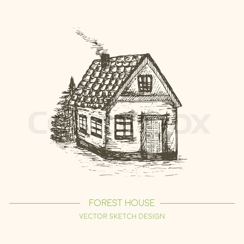 Wood House In Retro Sketch Style Stock Vector Colourbox