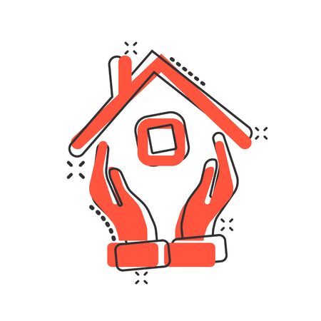 Home Care Icon In Comic Style Hand Hold House Vector Cartoon