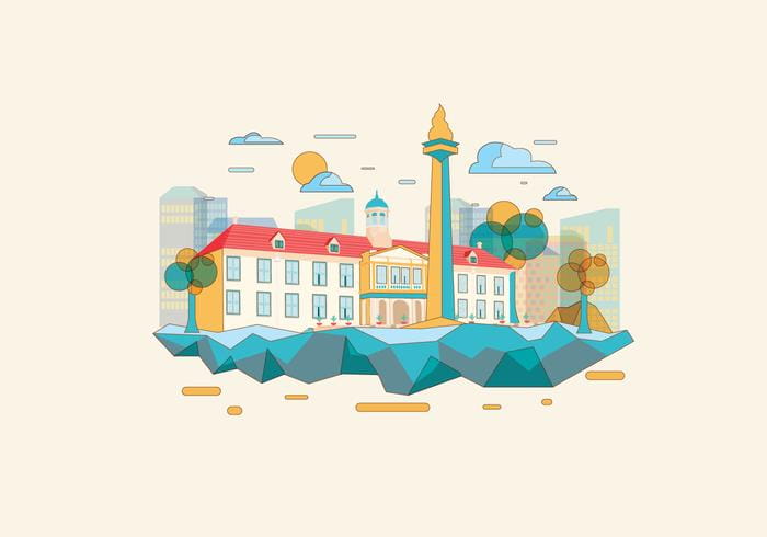 Jakarta Iconic Bulding Monas Vector Flat Nohat