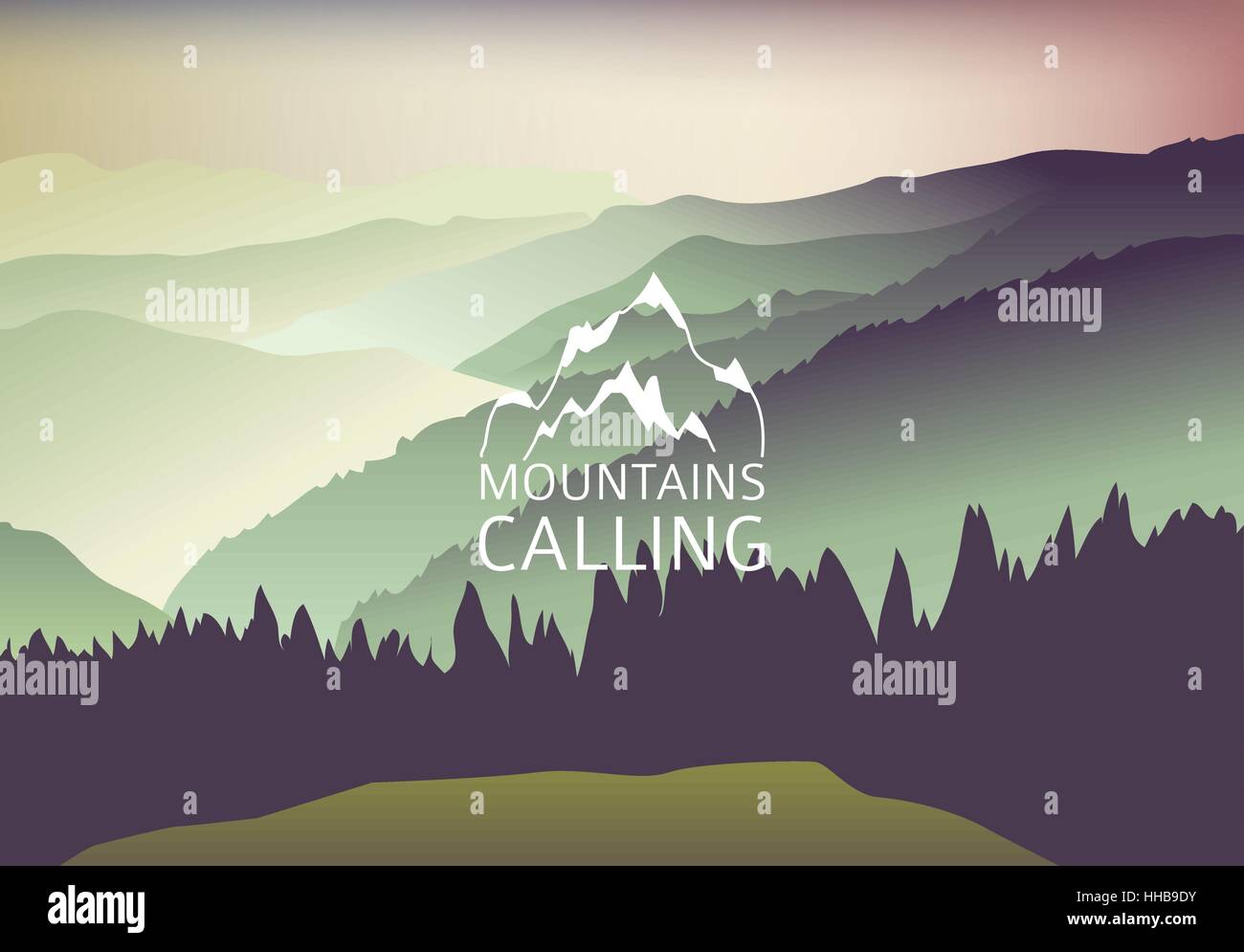 Green Sundown In The Mountain Vector Background Sign Mountains