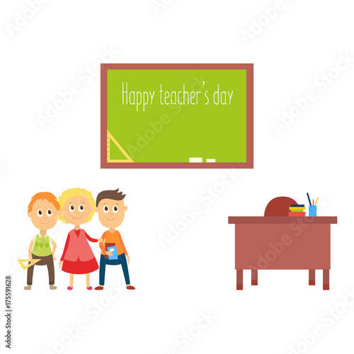 Happy Teacher School Kid Vector Illustration Kids Vector
