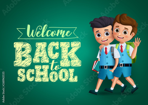 Welcome Back To School Banner With Kids Vector Welcome Back To