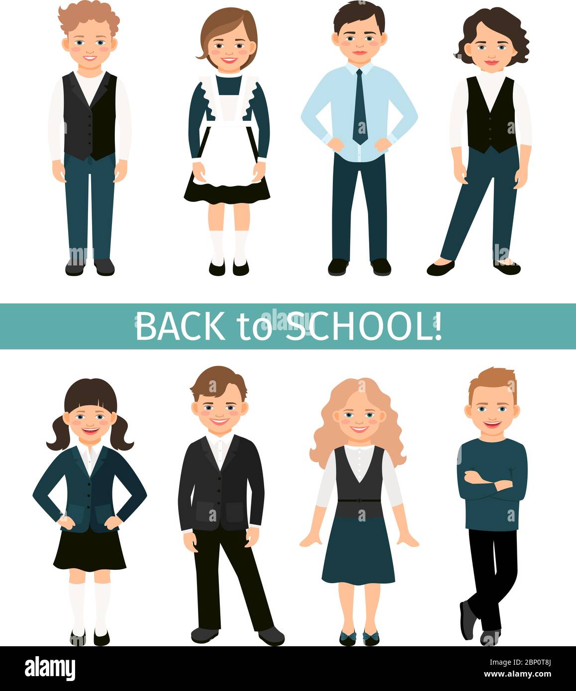 Set Of Cheerful School Children Flat Icons Isolated On White