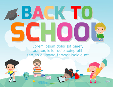 Cartoon Kids With Back To School Background Vector 04 Free Download