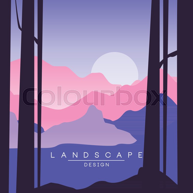 Landscape Background Sunset Mountain Scenery Vector Illustation