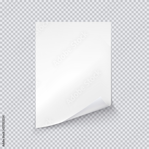 White Sheet Of Paper On Transparent Background Vector Realistic