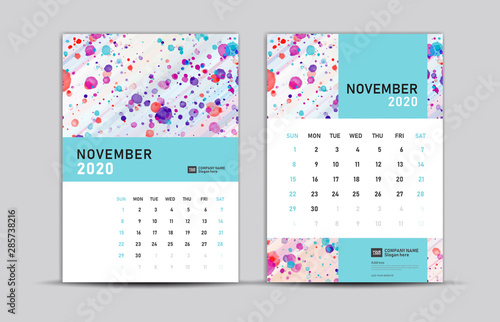 November 2020 Template Desk Calendar 2020 Trendy Background