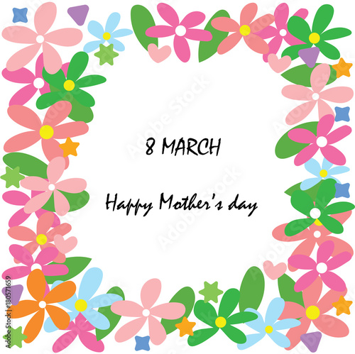 Happy Mother S Day At 8 March Card With Colorful Flower In Frame