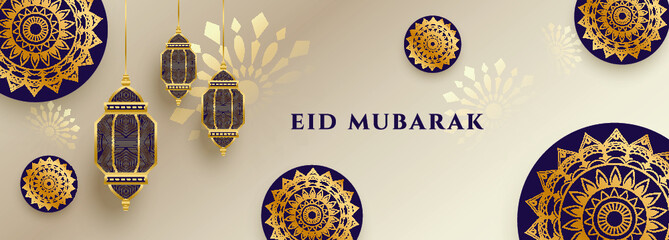 Glowing Lanterns Eid Mubarak Royal Luxury Banner Background