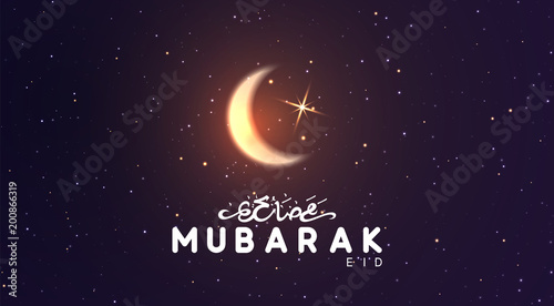 Eid Mubarak Islamic Banner Design Background Blowing Crescent