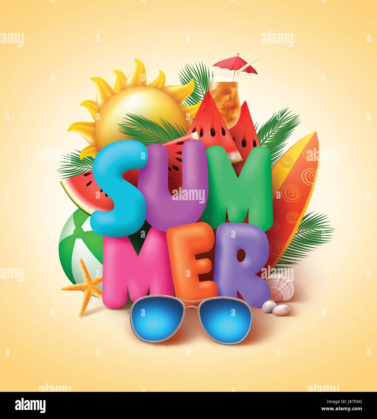 Summer Vector Banner Design With 3d Colorful Summer Text And Beach