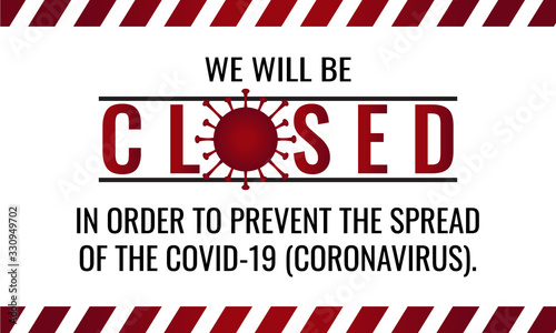 Coronavirus Covid 19 We Will Be Closed Card Or Background