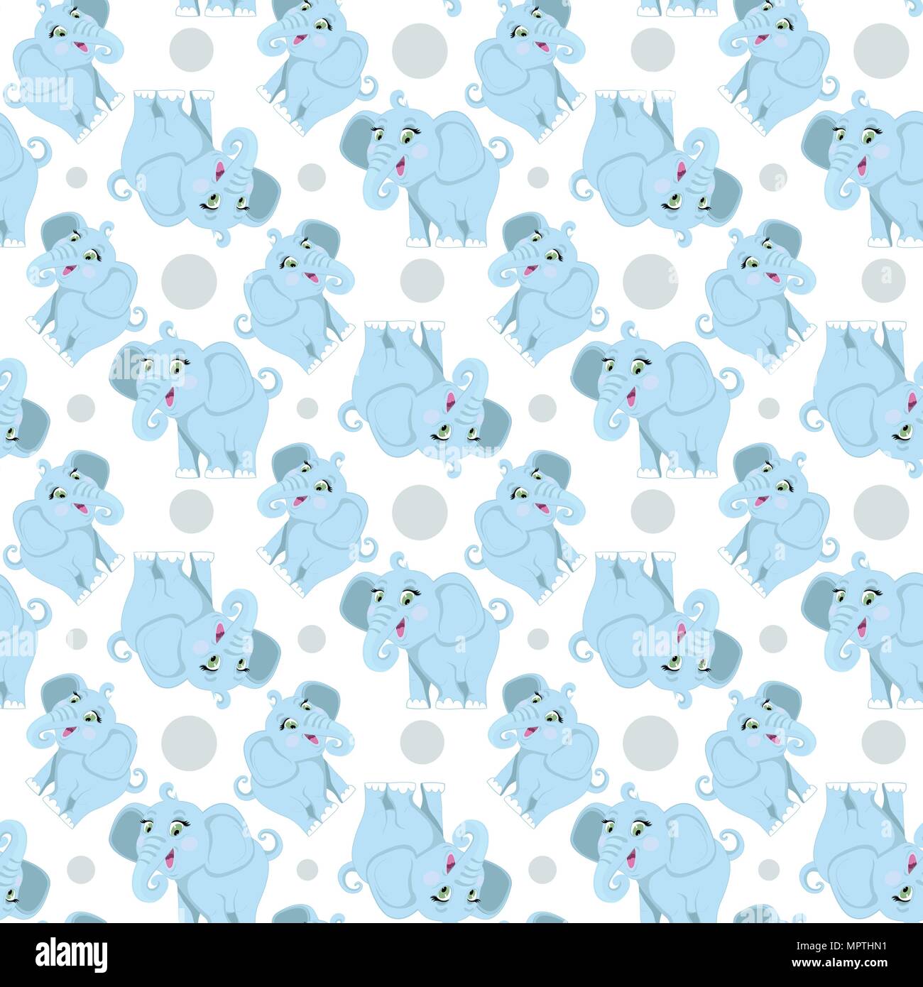 Elephant Pattern Vector Cute Seamless Child Background With Blue