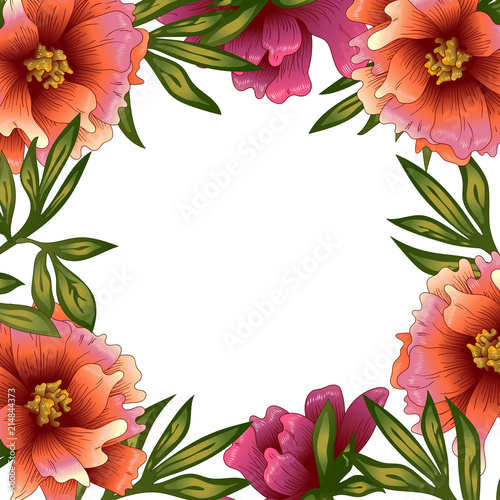 Peony Frame Flowers Vector Style Frame Border Ornament Square