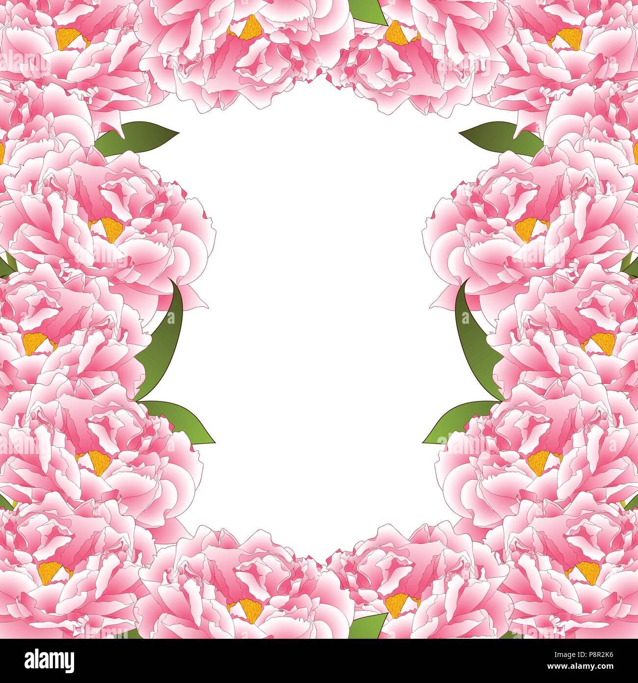 Pink Peony Flower Border Isolated On White Background Vector