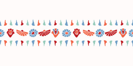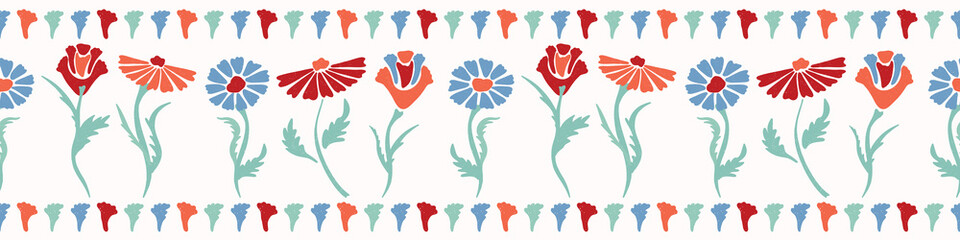 Vector Flower Border Horizontal Colorful Blooms In Folk Art Style