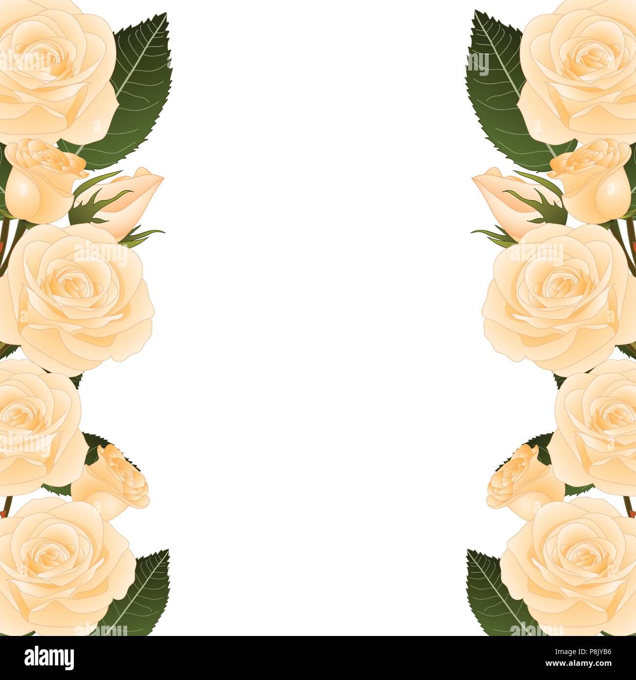 Flower Frame Of Rose Drawing And Sketch On White Background Stock