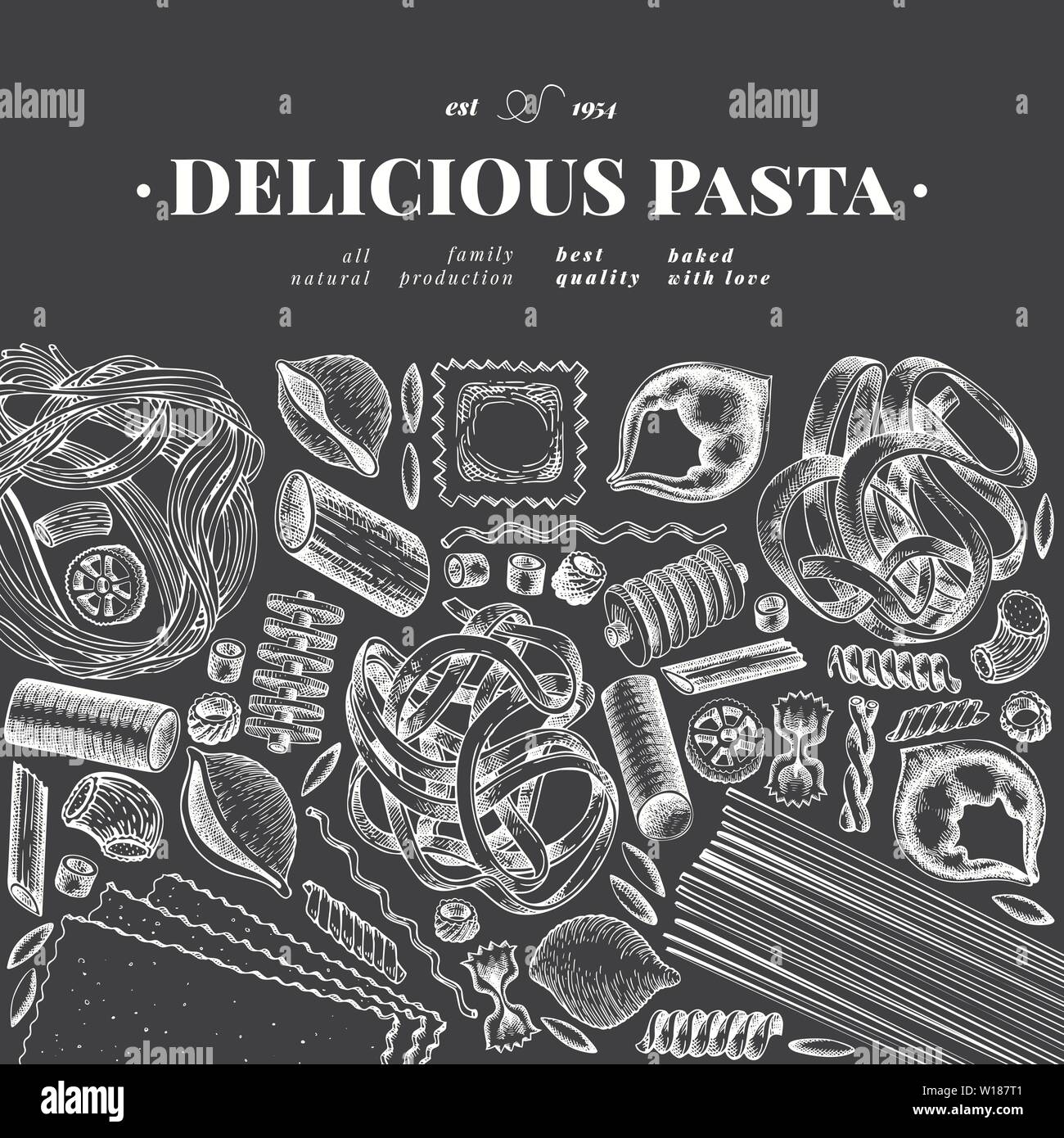Italian Pasta Design Template Hand Drawn Vector Food Illustration