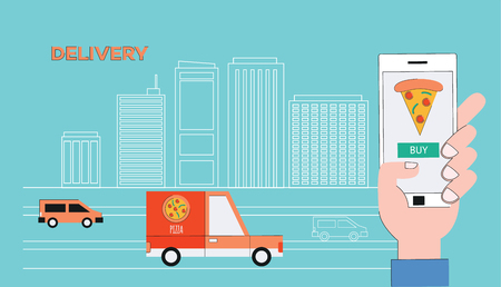 Vector Food Delivery Tracking Poster With Pizza Slice In Mobile