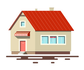 House With Red Roof On White Background Stock Illustration