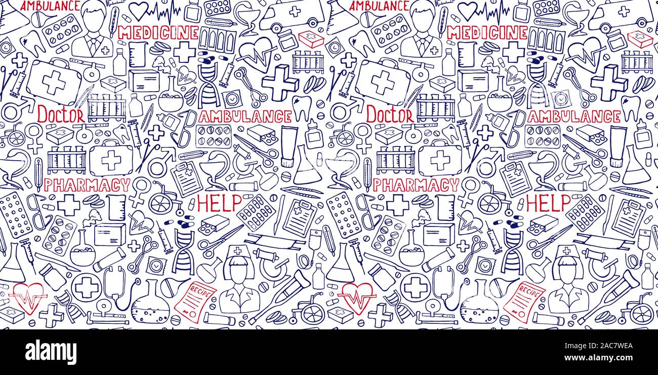 Medical Seamless Pattern Hand Drawn Medical Health Care