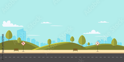 Abstract Vector Landscape Flat Design Empty Road Hills And