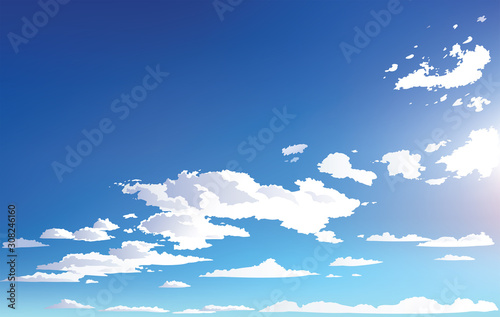 Vector Landscape Sky Clouds Sunny Day Anime Style Background