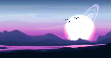 Fantastic Colored Panorama Fantasy Vector Landscape Space Vector