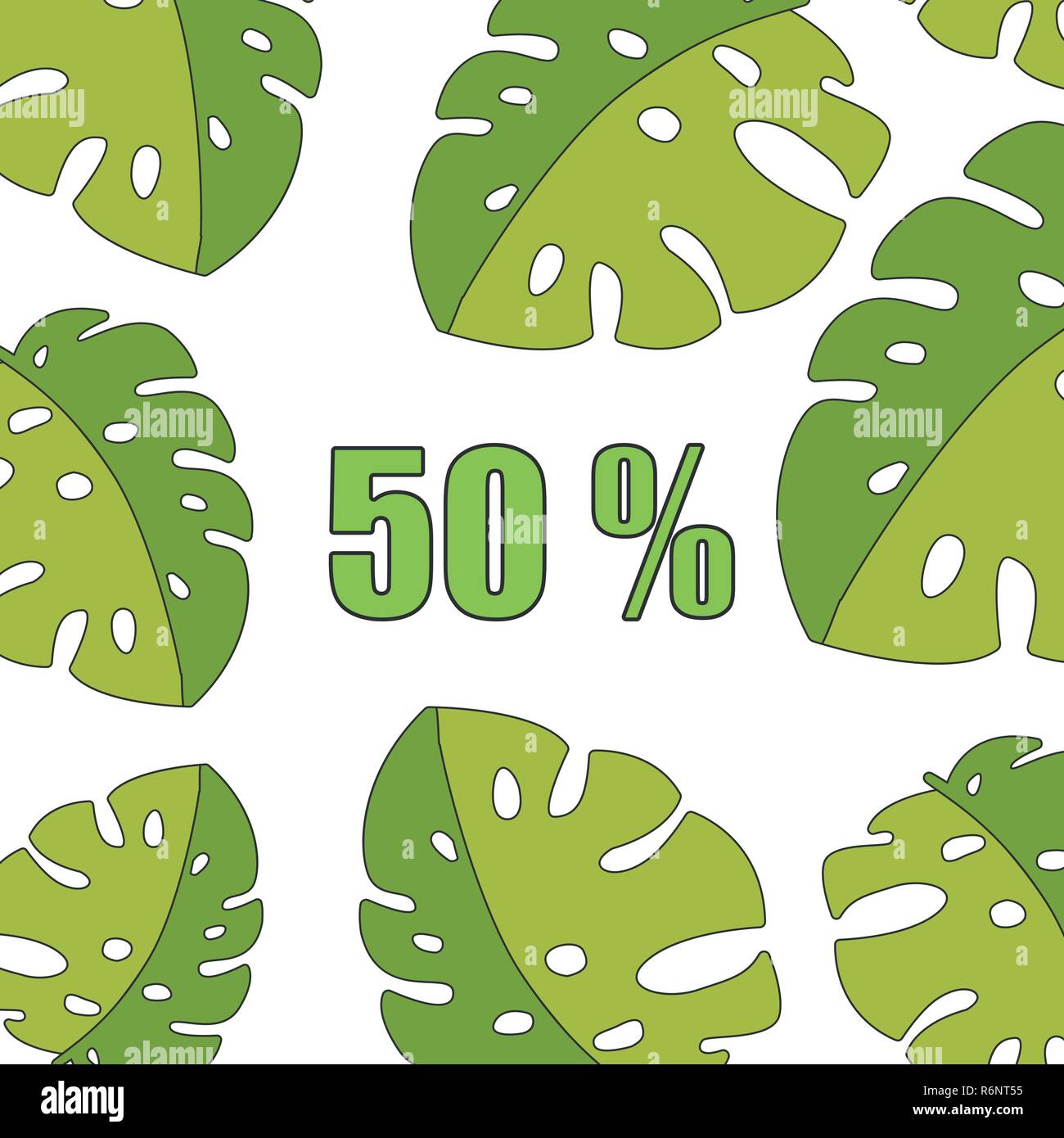 Sale Banner Poster With Palm Leaves Jungle Leaf Floral Tropical