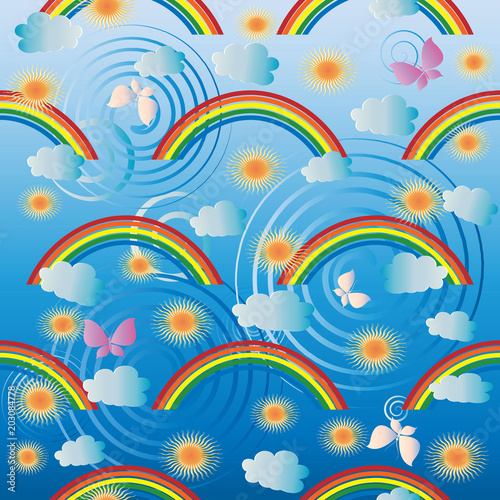 Coorful Baby Seamless Pattern Vector Light Blue Cute Background