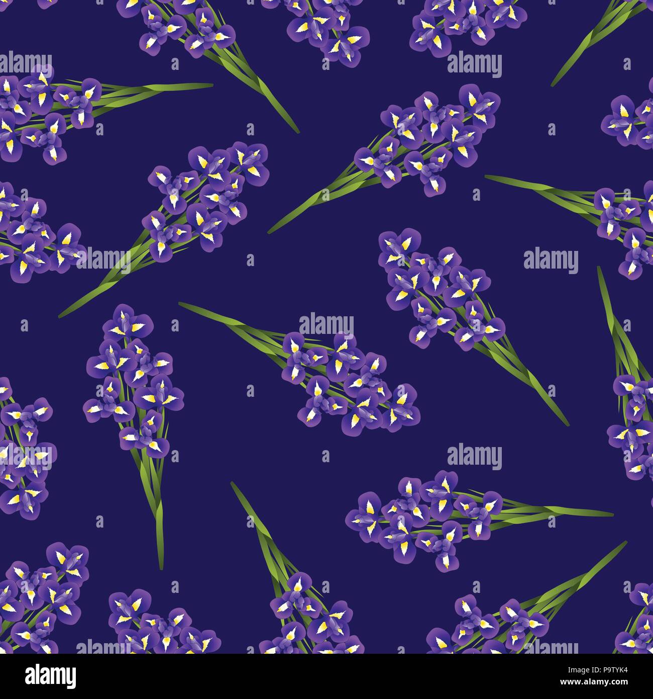 Dark Blue Purple Iris Flower On Navy Blue Background Vector