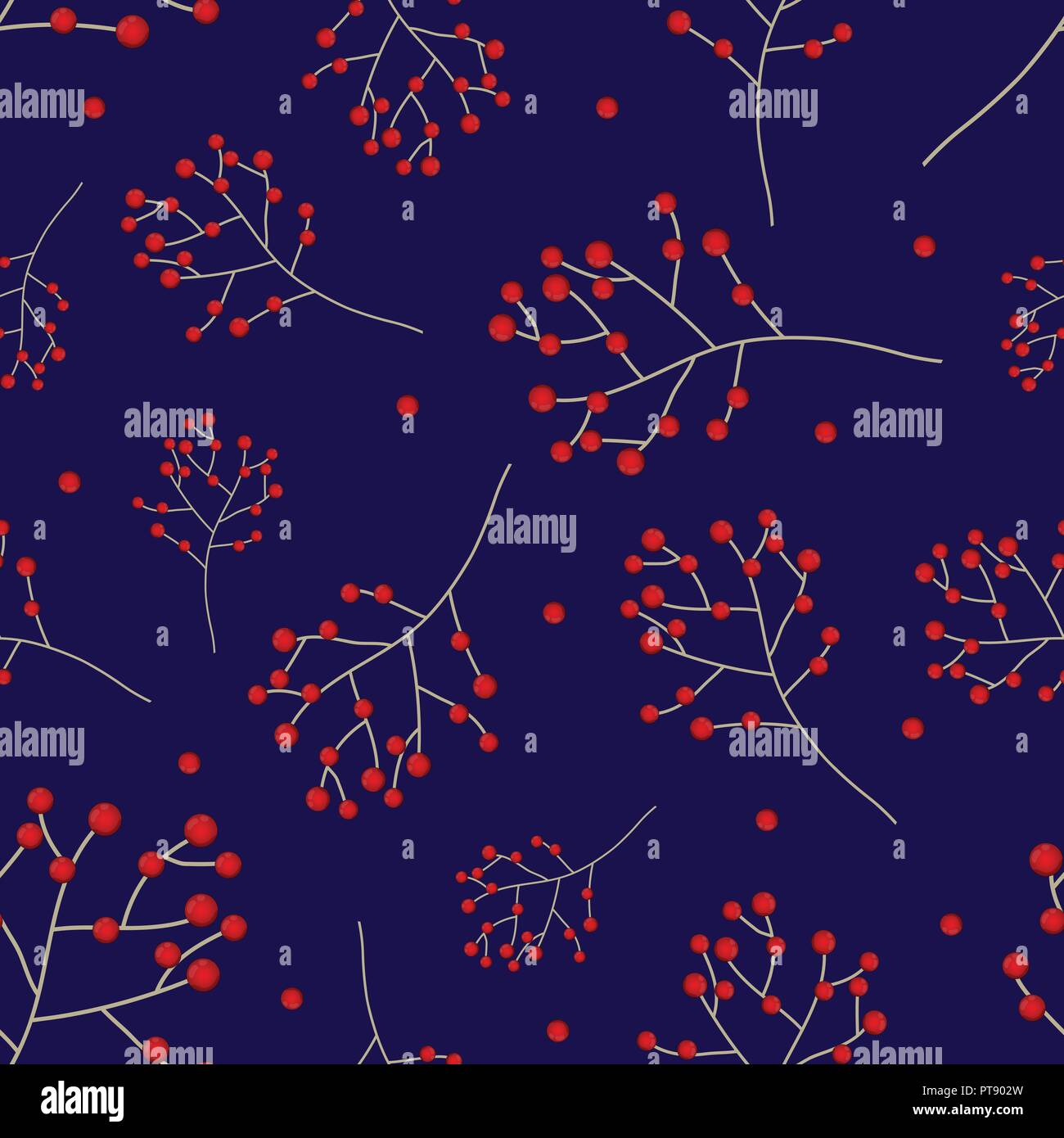 Red Berry Christmas On Navy Blue Background Vector Illustration