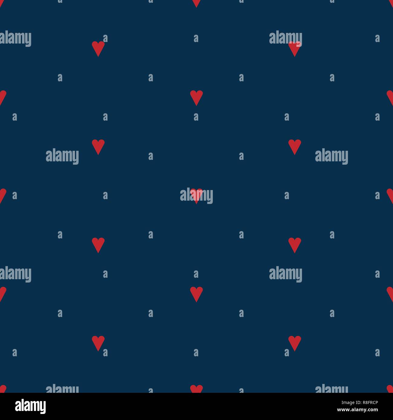 Red Hearts On Navy Blue Background Vector Seamless Pattern Stock