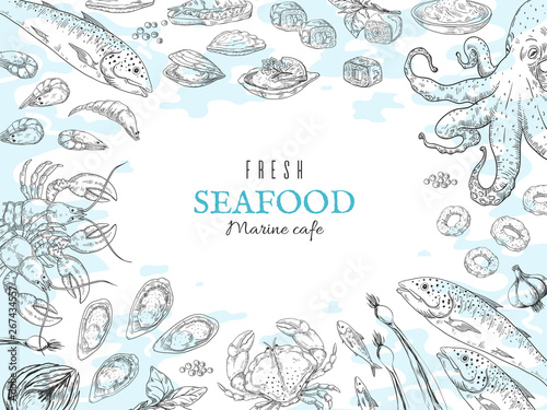 Hand Drawn Seafood Background Fish Restaurant Poster Gourmet