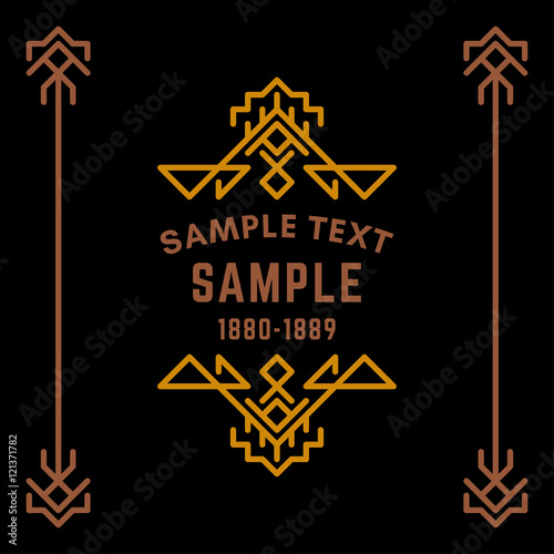 Decorative Geometric Logo And Borders Brown On Black Background