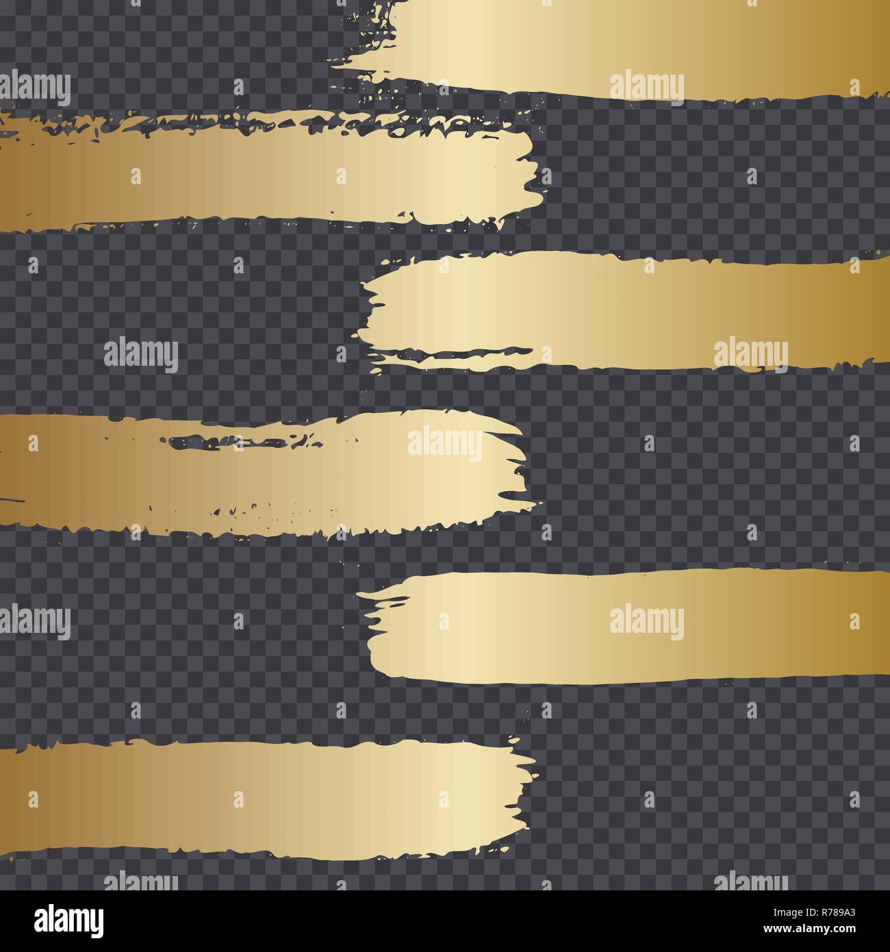 Hand Drawn Golden Brush Strokes Isolated On Dark Transparency Grid