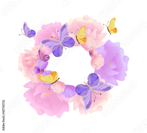 Butterflies And Flowers Round Wreath Background Vector Pastel Colors Buy This Stock Vector And Explore Similar Vectors At Adobe Stock Adobe Stock