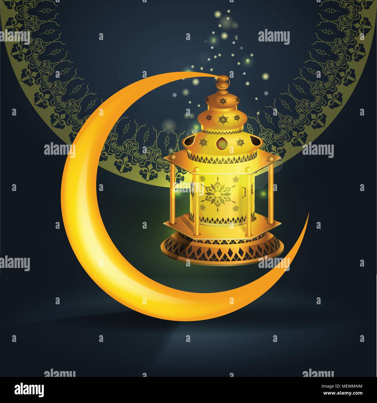 Eps Vector Ramadan Kareem Moon And Arabic Lamps Background
