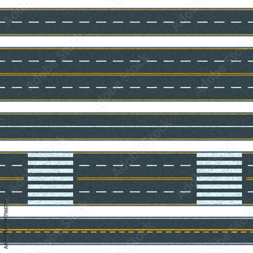 Set Of Seamless Vector Road Background Straight Asphalt Roads