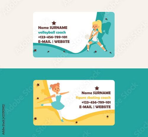 Child In Sport Vector Business Card Girl Character Playing