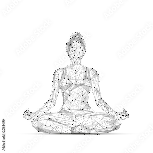 Abstract Mash Line And Point A Woman Yogi Sits In A Lotus Pose