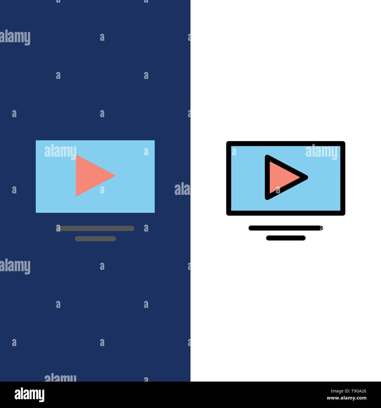 Video Play Youtube Icons Flat And Line Filled Icon Set Vector
