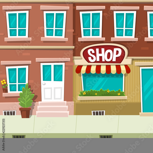 Vector Cartoon Urban Street House And Shop Scene Background
