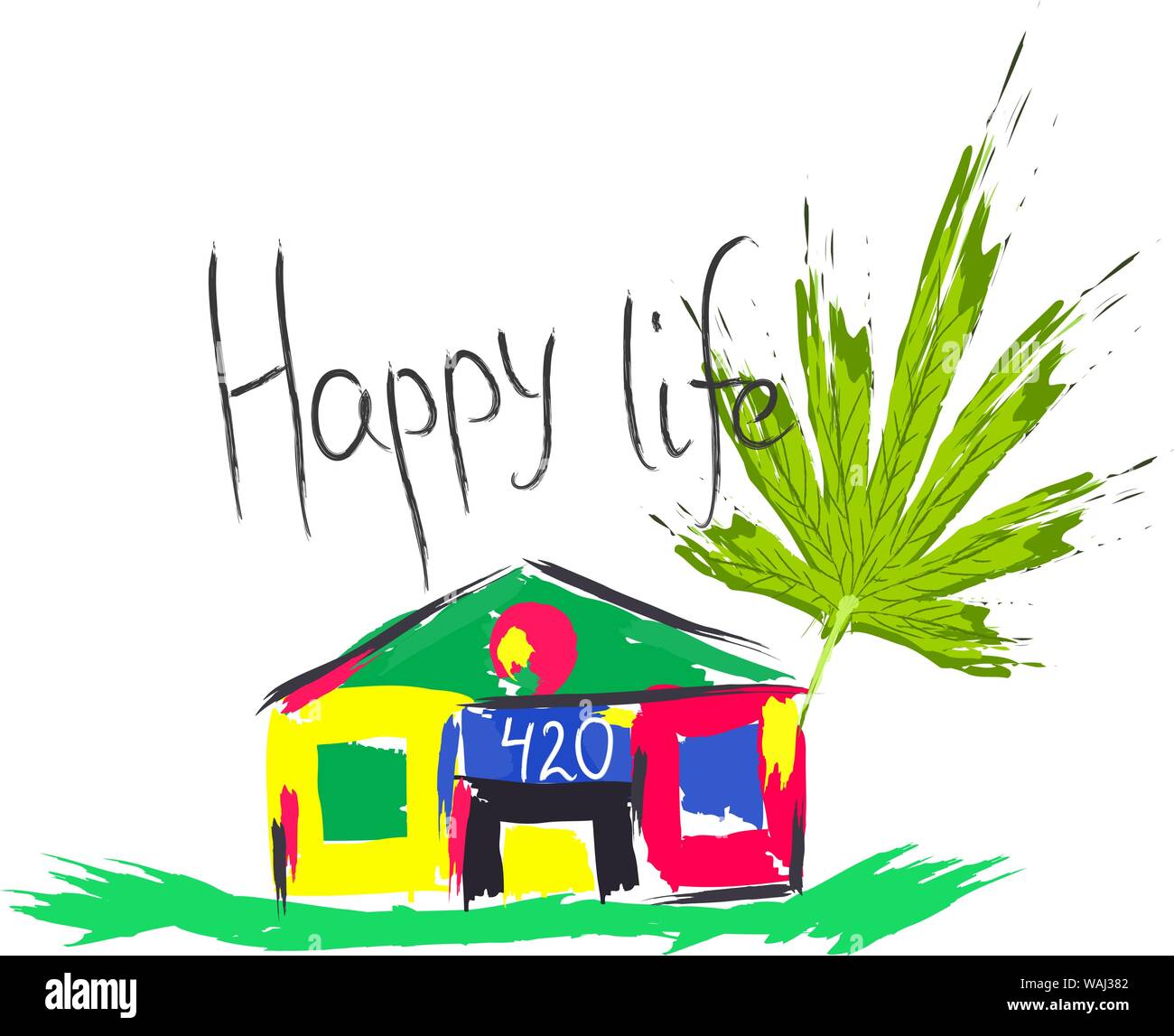 Colorful House Or Hemp Farm With Large Strokes Cartoon Background
